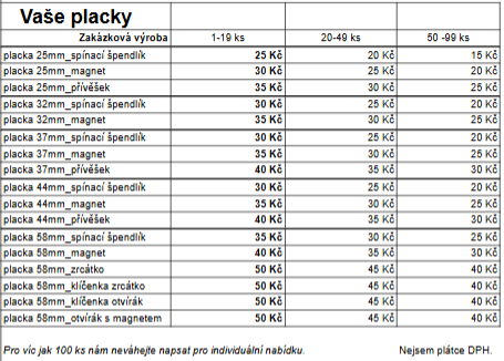 Na každou placku jiné jméno, nápis nebo fotka: +5 Kč / ks